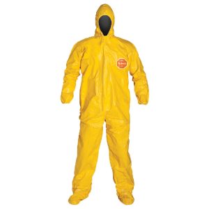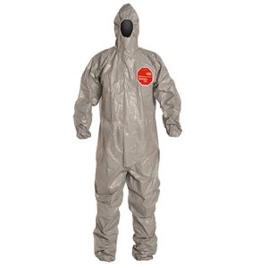 TF145TG-TG Overol Tychem 6000, costura termosellada sencilla, capucha integrada, cierre al frente con solapa, el stico en pu os y tobillos. Color gris.