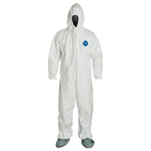 TY122S-2X Overol Tyvek 400 con cierre frontal, elástico en puños, capucha y espalda. Calcetines antideslizantes incluidas. Costuras cosida, color blanco.