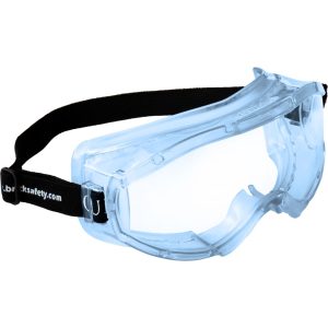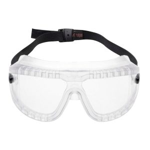 G15001 AF Goggle contra salpicaduras químicas, lente claro de policarbonato y marco de PVC, revestimiento anti-empañante con correas elásticas de nylon.
