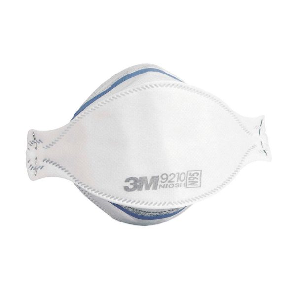 9210+ Respirador desechable, N95, plegable con eficiencia de filtrado del 95% con filtro cargado electrostáticamente. Bandas elásticas tipo resorte engrapadas al respirador de material interior suave con Puente nasal para mejor ajuste.