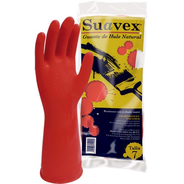 SSXR-7 Guante de látex de hule natural, color rojo. Clase 1, acabado ribete, grabado antiderrapante, anatómicos. Largo 30 cm, espesor de 40 centésimas de milímetro.