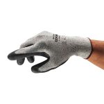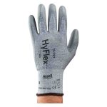 11-727-9 Guante contra corte nivel 4 con recubrimiento de poliuretano color gris. Con puño tipo muñeca de punto con palma recubierta, forro HPPE. Fabricada con 15 hilos. HyFlex.