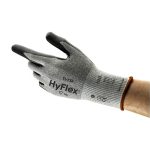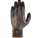 11-939-8 Guante contra corte A2 con recubrimiento de espuma de nitrilo color negro y gris. Puño tipo muñeca de punto con acabado totalmente recubierto. Forro DYNEEMA. Fabricado con 18 hilos. HyFlex.