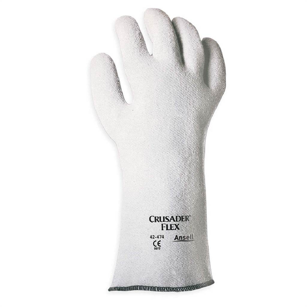 42-474 Guante contra calor, color blanco. construcci n tipo tricotado, pu o tipo guantelete, forro poli ster no tejido poli algod n. Longitud: 13.5-14 pulgadas.