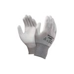 48-135-9 Guante de uso general con recubrimiento de poliuretano blanco. Con construcción tricotado, puño tipo muñeca de punto con la punta de los dedos recubiertas, forro de nylon, Fabricado con 15 hilos. HyFlex.
