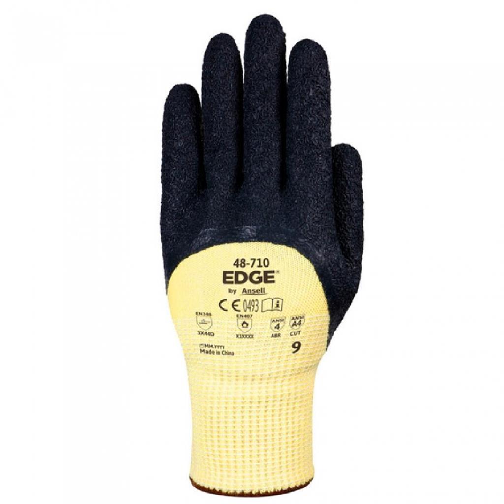 48-710-10 Guante de uso general, con recubrimiento de l tex de caucho natural, color negro. construcci n tricotado y pu o de el stico tejido. Acabado 3/4 de recubrimiento.