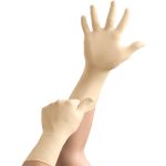 91-225-6.5 Guante desechable de l tex de caucho natural, tipo de pu o derecho. Con dedos texturizados, grosor de la palma 9.1 mil, grosor de los dedos 9.1 mil. Longitud del guante 11.8 pul. Superficie interna clorada, color natural. AccuTech.
