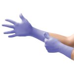 92-500-6.5-7 S Guante desechable de nitrilo empolvado con puño estándar. Superficie externa con dedos texturizados. Grosor de la palma de 4.3 mil, grosor de los dedos 5.5 mil, longitud de 9.5. Color verde. TouchNTuff.