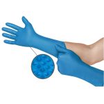 93-283-GD Guante desechable, de nitrilo color azul. Longitud de Pu??extendido. Sin polvo. Grosor de: 7.9 mil. Longitud de: 11.8. Agarre con textura. MICROFl tex.