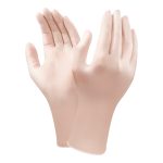 93-311-L Guante desechable de nitrilo libre de polvo con puño extendido clorado en forma ambidiestro. Color natural. Grosor de la palma 3.9 mil, grosor de los dedos 4.9 mil, longitud de 11.8. Nitrilite.