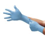94-243-S Guante desechable de nitrilo libre de polvo con puño estándar. Con dedos texturizados. Grosor de la palma 4.3 mil, grosor de los dedos 7.1 mil, longitud del guante 9.6. Color azul violeta. Microflex.