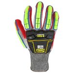 R065-9 Guante contra impacto, recubrimiento de nitrilo hi viz. construcci n tricotado y acabado recubierto. Superficie de agarre de nitrilo con textura arena. Galga 13. RINGERS.