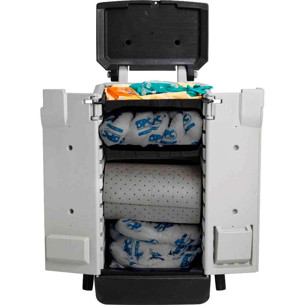 107793 SKA-K2 Kit móvil para derrames, capacidad de absorbencia de 22 gal, dimensiones de 39 in H x 17 in W x 18 in D. Incluye: 5 bolsas para eliminación, 5 calcetas, 8 almohadas, gafas de seguridad, guantes de nitrilo, manual, rollo.