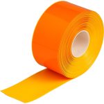 104377 Cinta de franjas color negro con amarillo de poliéster con sobre laminado de poliéster. Rollo de 100 pies. Dimensiones de 4 pulgadas de ancho x 100 pies de largo.