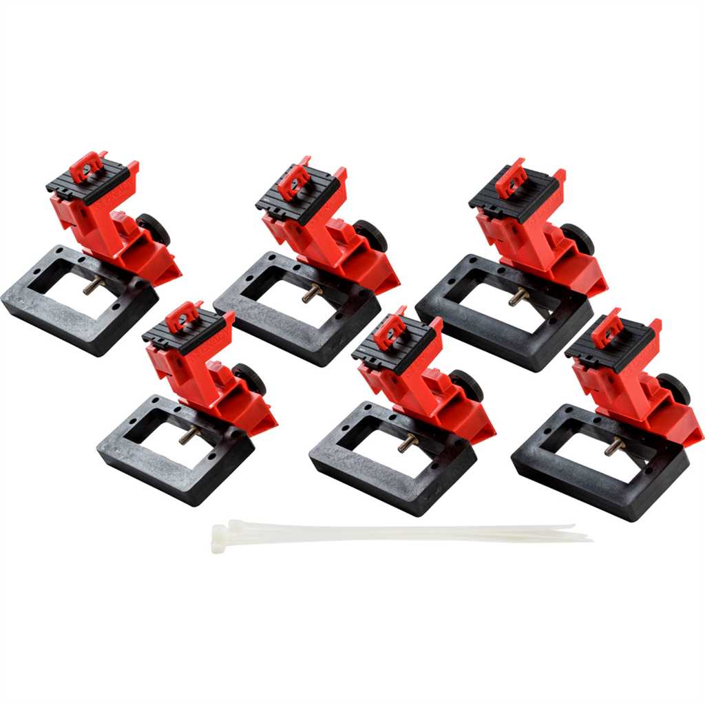 148691 Dispositivo de bloqueo de abrazadera sobredimensionado para interruptores automáticos, voltaje de 480/600 V. Dimensiones de: 2.358 in H x 3.75 in W x 4.143 in D. Paquete de 6. TAGLOCK.