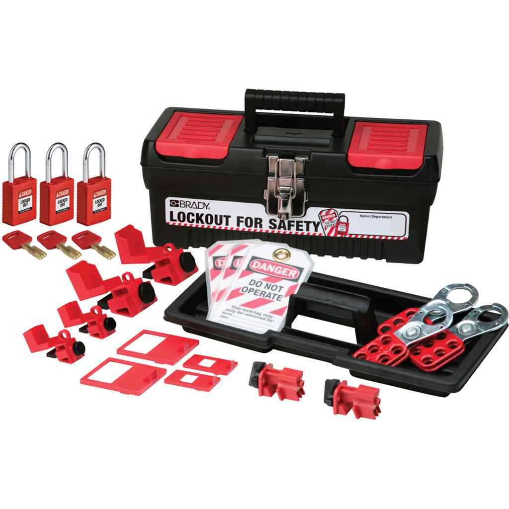 150980 Kit personal en caja de herramientas para bloqueo de interruptores, con 3 candados, mecanismo de llave Safekey, espacio vertical entre arco 1.5 In, de nylon.