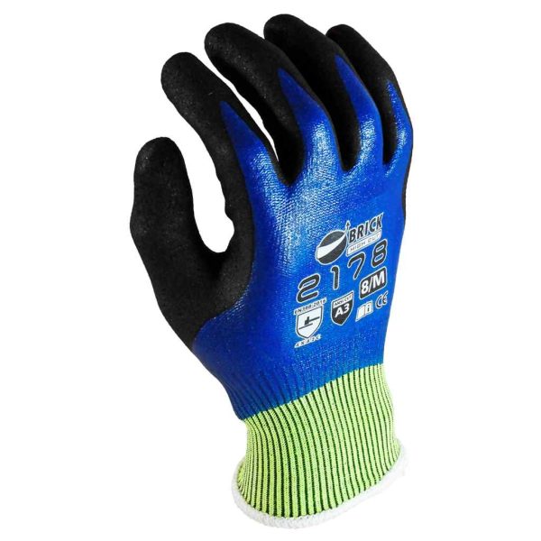 2178 t10 Guante para uso mecánico y contra corte N3, recubrimiento de nitrilo y nitrilo arenoso. Tejido de polietileno de alta densidad, calibre 13. Color azul con negro y verde.