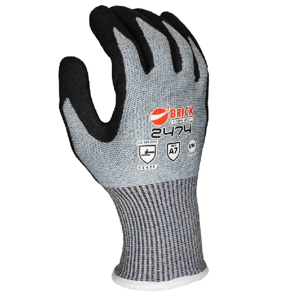 2474 T8 Guante contra corte, nivel A9. Elaborado de: 33% HPPE, 27% Nitrilo, 21% poli ster, 17% metal fiber, 2% Spandex.