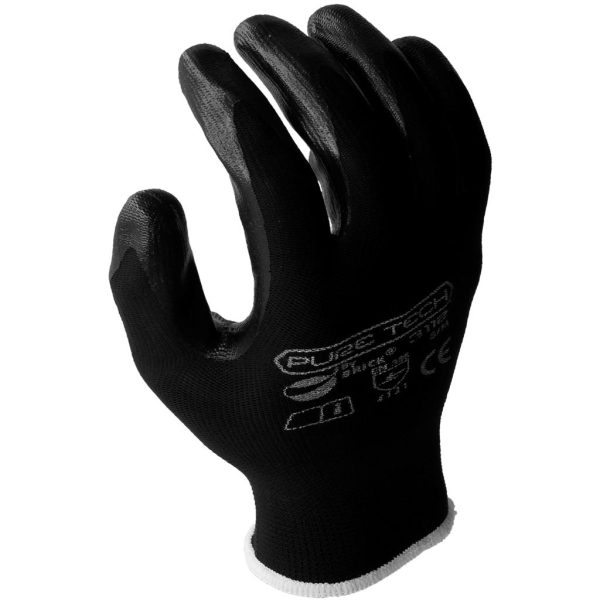 3112 T9 Guante de uso mecánico, con recubrimiento de nitrilo laminado color negro en los dedos y palma. Tejido de poliéster, soporte textil sin costura, ventilado.