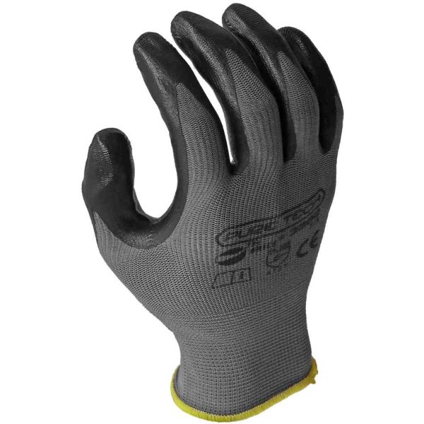 3282 T6 Guante de uso mecánico, con recubrimiento de nitrilo laminado en dedos y palma color negro. Tejido de nylon color gris, soporte textil sin costuras, ventilado.