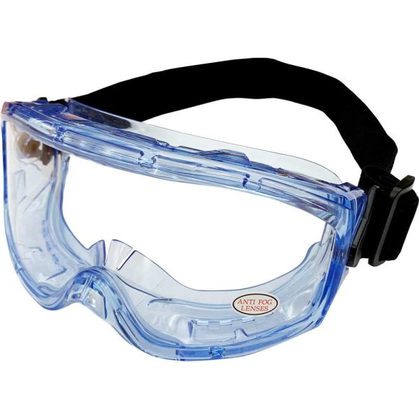 G16001 AF Goggle contra salpicaduras químicas con marco de PVC y lente de policarbonato. Revestimiento anti-empañante y correas elásticas de nylon.