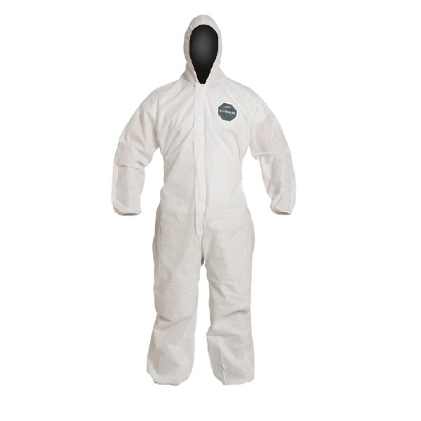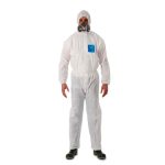 PB127SXL Overol blanco, con el sticos en las mu ecas y tobillos. Costuras cosidas. Con capucha.