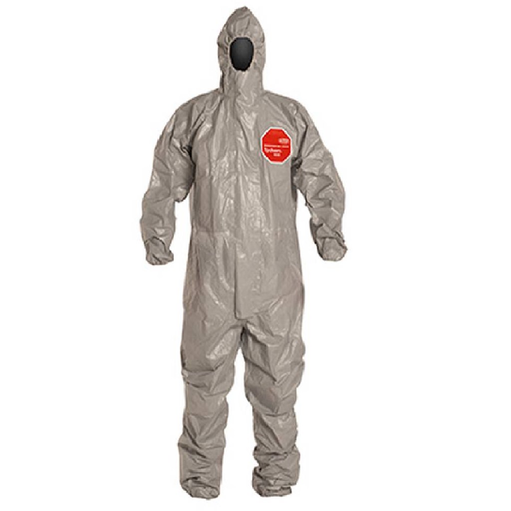 TF145TG-T XL Overol Tychem 6000, costura termosellada sencilla, capucha integrada, cierre al frente con solapa, el stico en pu os y tobillos. Color gris.