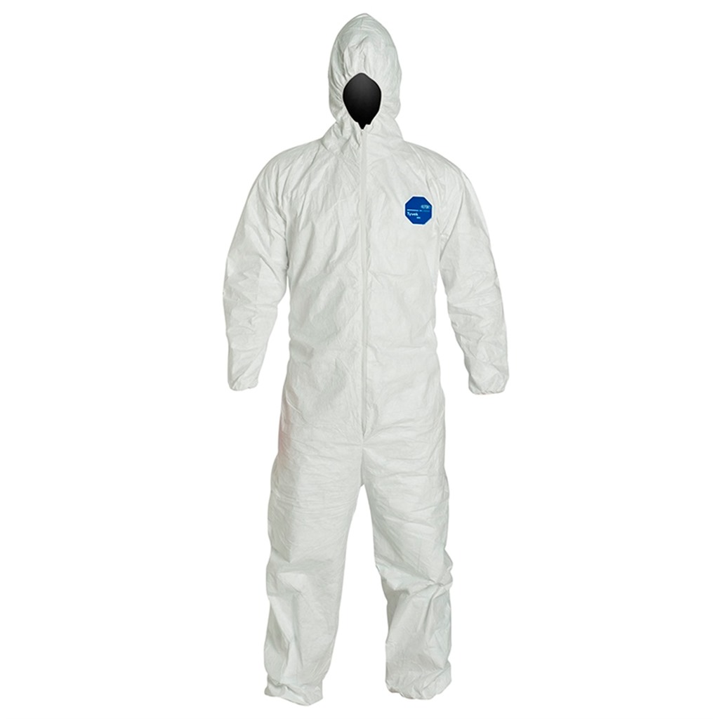 TY127S-L Overol Tyvek 400 diseño Comfort Fit. Capucha ajustable para respirador, muñecas, tobillos y cintura elástica. Costuras cosidas, color blanco.
