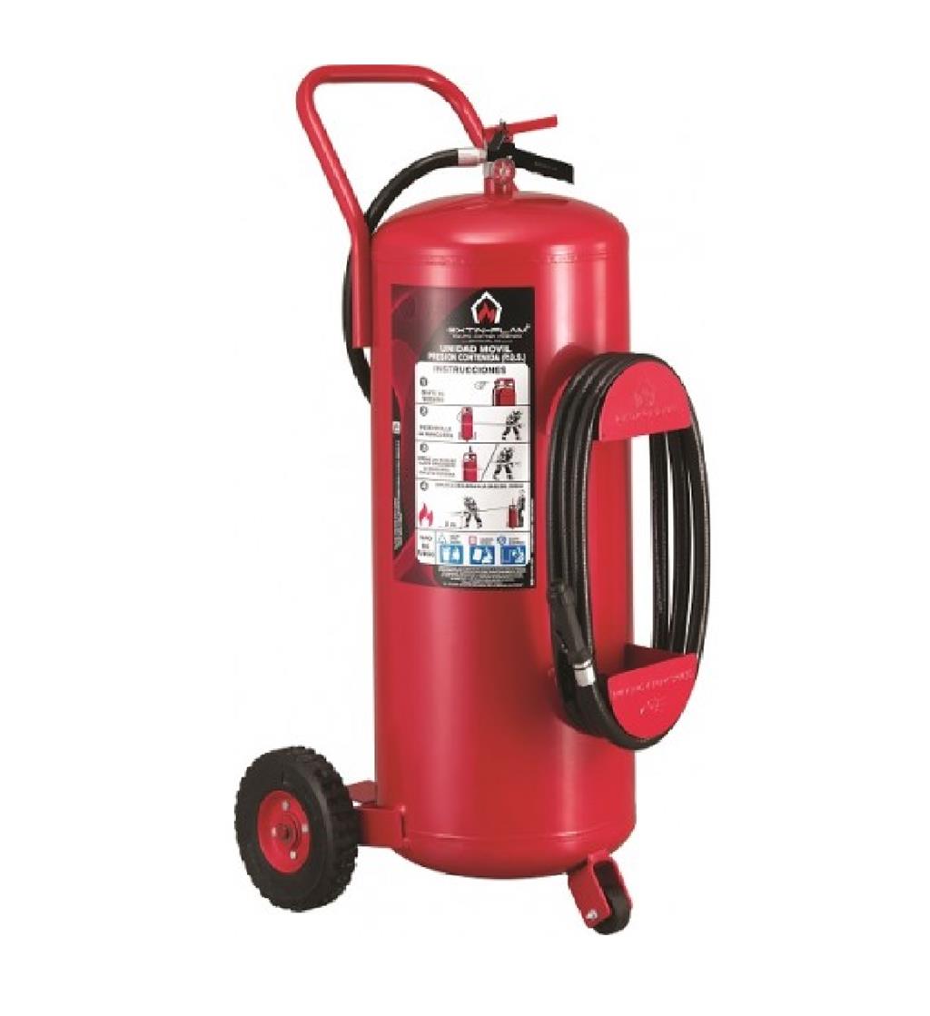 C014C01 Extintor tipo unidad m vil EXTIN-PQS, de 50 kilos. Cargado a base de polvo qu mico seco, al 75% de fosfato monoam nico certificado, color rojo brillante.