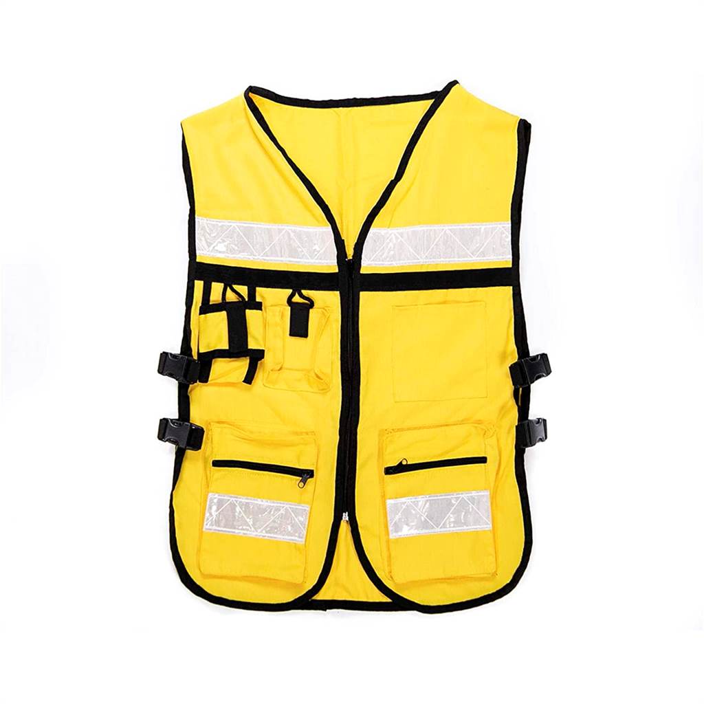CHBRIG-AM Chaleco brigadista color amarillo, 100% de algodón. Con polipropileno en todo el contorno de la prenda, color negro. 5 bolsas frontales. Cierre frontal y cuatro broches tipo Samsonite, con cintas reflejantes.