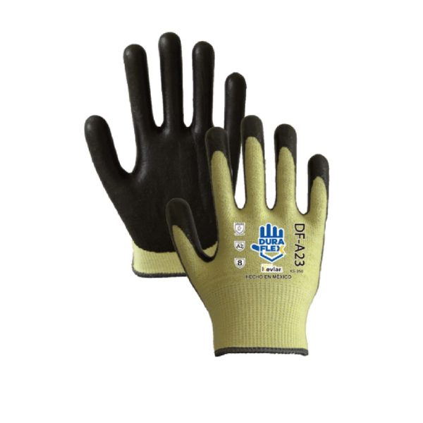 DF-A23 T7 KS-350/7 Guante tejido de blend de Kevlar stretch, color amarillo con recubrimiento de nitrilo espumado negro en palma.