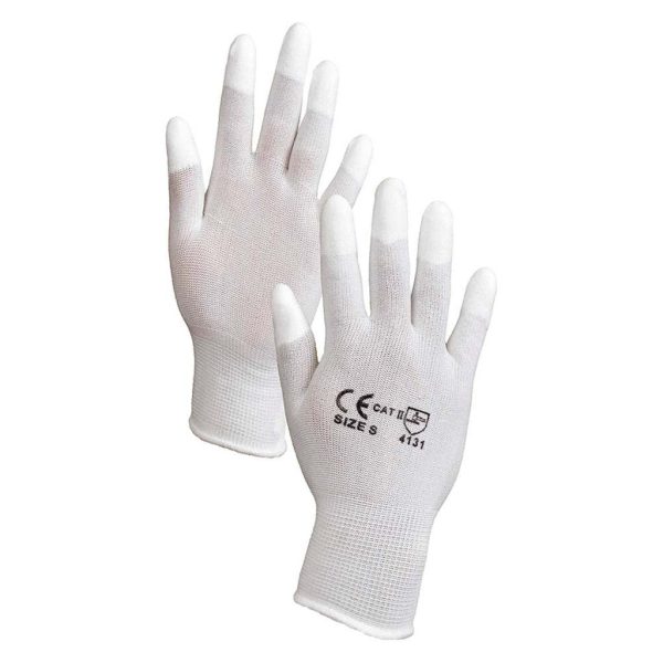 GI-PNFK-8/M Guante de uso general de nylon, color blanco. Recubierto de poliuretano en la punta de los dedos, con puño tejido de punto y ribeteado.