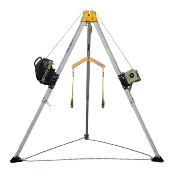 999SA17/ Km sA17 Sistema completo para espacios confinados. Incluye: Tripi de aluminio, SRL de 100ft con triple acci n, malacate, Brackets, 2 poleas con carabinero , y maleta.