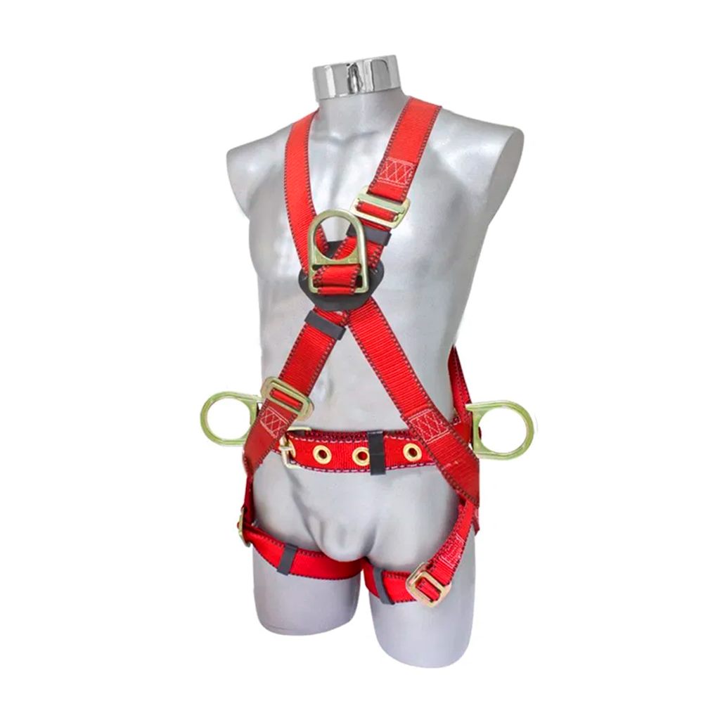 PC100K-S4 Arnés tipo cruzado con anillo D en espalda y pecho, hebillas de paso en tórax y piernas, con cinturón adicional, hebilla de machuelo. Anillo D en los costados del cinturón.