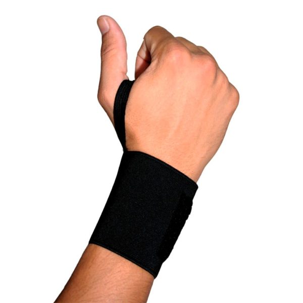 1060 Muñequera elástica con cierre de gancho y felpa con refuerzo para el dedo pulgar. Dimensiones de: 42 cm de largo y 7.5 cm de ancho.