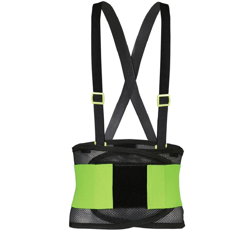 JYR-800-MD Soporte sacrolumbar de malla, con tirantes el sticos de 1 1/4 pul. Hebilla de ajuste. Cierre delantero de gancho y felpa. Banda el stica de alta visibilidad y 4 varillas en espalda de 6 pul x 1/2 pul.
