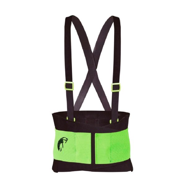 JYR-826-XG-3C Faja sacrolumbar el stico, reforzado libre de bies. Tirantes el sticos de 32 mm. Con tercer cintur n. Banda el stica de alta visibilidad de 10.1cm.