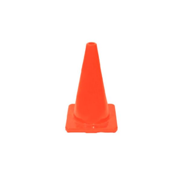 SR-3180 Cono brilloso de PVC color naranja, de 45 cm. Con base de 8 puntos de apoyo.