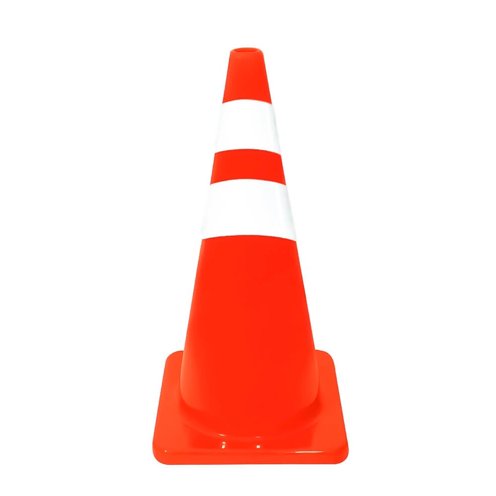 SR-3185-2RK Cono brilloso con 2 reflejantes, color naranja fabricado de PVC. Base con 8 pu os de apoyo. Altura de 71 cm.