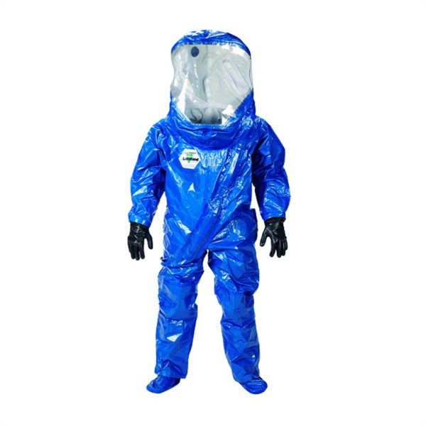 80640W-L Traje de protección a prueba de gas, encapsulado nivel A, espalda expandida, costura sellada, solapa sobre cremallera, visor de protección, guantes de butilo, 2 válvulas de exhalación, botas tipo calcetín, cinturón con 3 presillas.