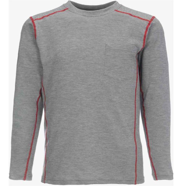 LSCAT06-L Playera de alto desempe o color gris, marca Lakeland. Manga larga tipo Henley, cuello redondo, bolsa tipo parche. Ofrece protecci n contra fuego repentino y arco eléctrico. categor a 2 para protecci n contra arco eléctrico (ATPV = 16.4 cal/cm2). Talla L.