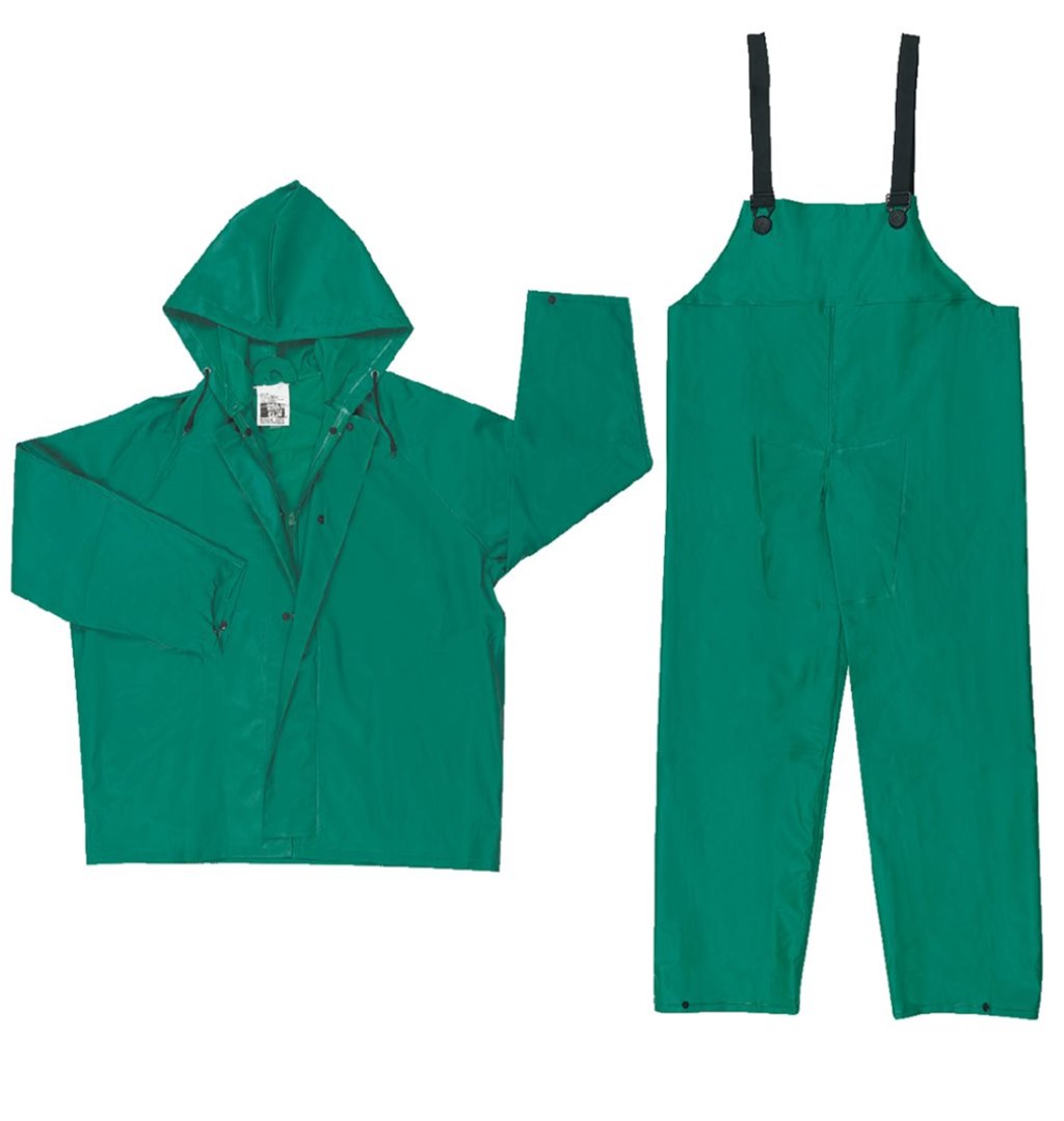 3882-2XL Traje contra qu micos de PVC, poli ster. Color verde, con cremallera y broches a presi n. Costura termo sellada. el stico interno y broche a presi n.