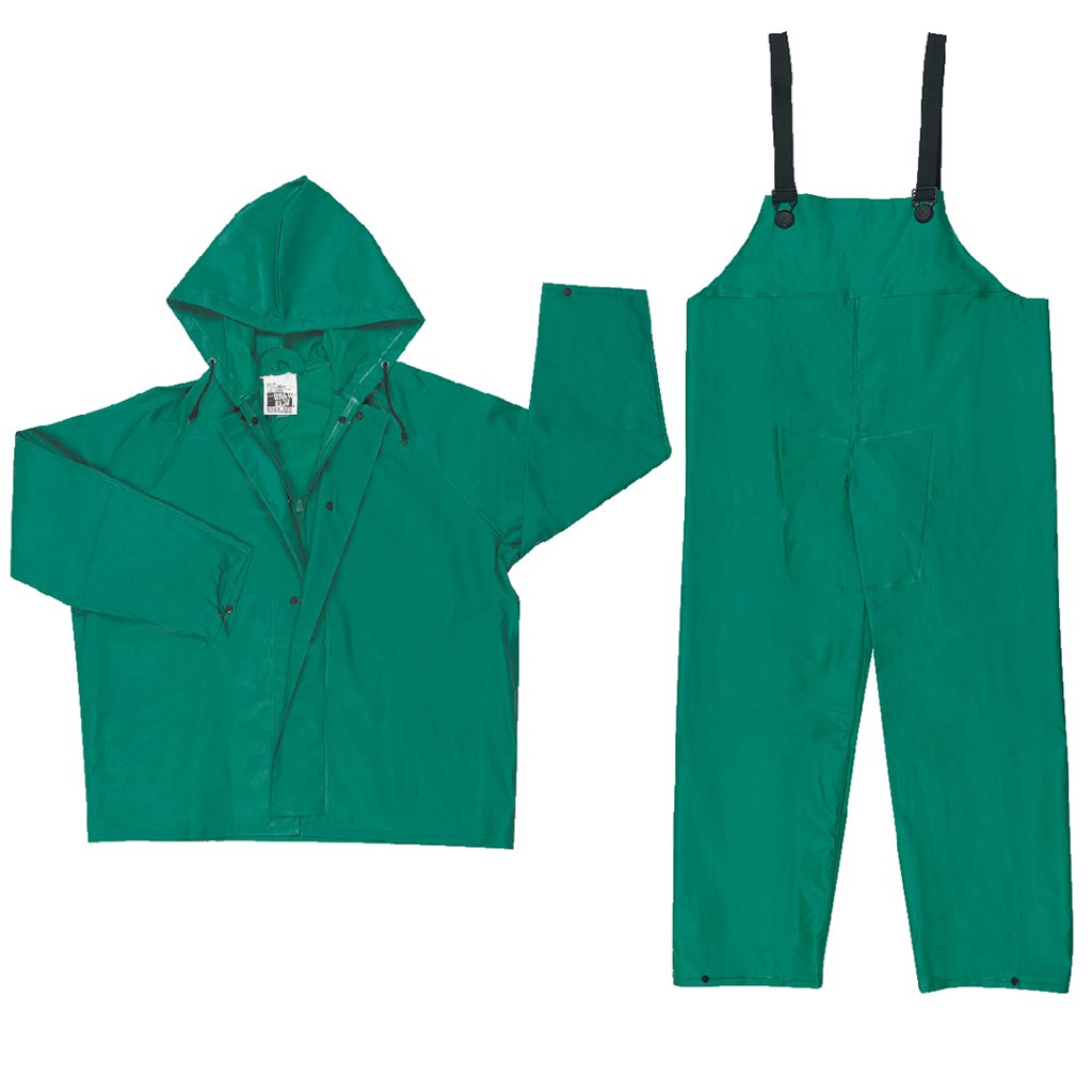 3882-GD Traje contra qu micos de PVC, poli ster. Color verde, con cremallera y broches a presi n. Costura termo sellada. el stico interno y broche a presi n.