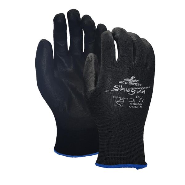 96699 T-L Guante de uso general, negro. De poli ster con recubrimiento de poliuretano negro en palmas y dedos.