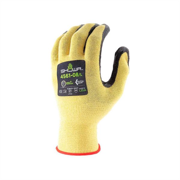 4561 07-M Guante contra corte nivel A4 con recubrimiento de nitrilo color amarillo con negro. Forro kevlar, calibre 15 con terminado esponja.