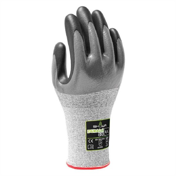 576-M Guante resistente al corte A3, con recubrimiento 3/4 de nitrilo. Color gris con negro. inmersi n de espuma de nitrilo en la palma. Con pu o el stico.