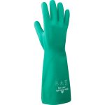 * 730-10 Guante contra químicos con recubrimiento de nitrilo, color verde. Flocado de algodón si soporte con acabado grabado. Espesor de 15 mil y longitud de 13 pulgadas.