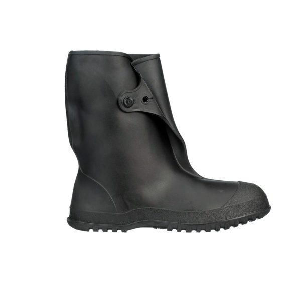 35121-XL Cubrezapato de PVC color negro, 100% impermeable. De 10 pulgadas con botón moldeado, suela con tacos y casquillo.
